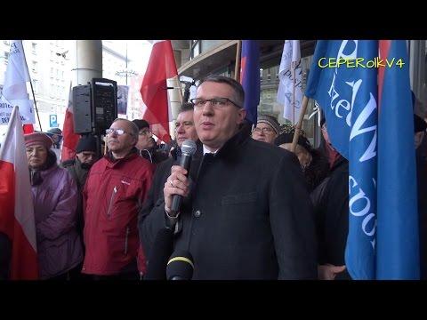 Na manifestacji przemawiał Przemysław Wipler, wiceprezes partii KORWiN: Ani pan Schulz, ani pani Merkel, ani pan Juncker nie mają prawa decydować o tym, jak będziemy się rządzić w Polsce. Dzisiaj w Parlamencie Europejskim odbędzie się debata – sąd nad Polską, polskim rządem, w oparciu o donosy z kraju. Niestety, stało się prawdą hasło mówiące: „Wczoraj Moskwa, dziś Bruksela, niepodległość nam zabiera”.