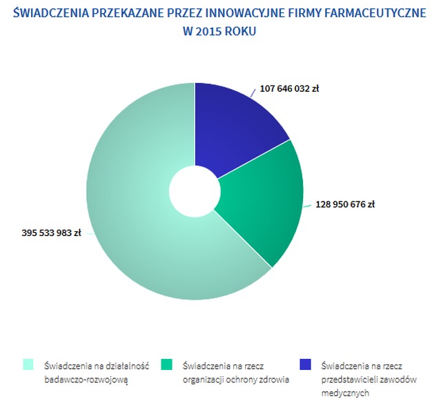 Łącznie tylko w zeszłym roku 32 firmy, które wdrożyły Kodeks Przejrzystości, przekazały do służby zdrowia 623 mln zł, z czego 395 mln zł przeznaczono na działalność badawczo-rozwojową. Reszta to finansowanie lekarzy, farmaceutów czy ośrodków zdrowia. 66 mln zł lekarze i farmaceuci dostali na opłacenie szkoleń i wyjazdów, a 41 mln zł zarobili na prowadzeniu wykładów.